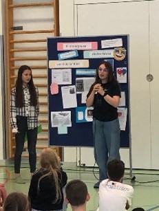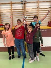 Claudia wurde geehrt, weil sie den Schwimmunterricht seit acht Jahren leitet. Jana wurde geehrt, weil sie die Schulcomputer immer einsteckt, damit die Akkus geladen sind. Später wurden die Sieger des Sporttages preisgegeben: Die Gruppe Black Panter belegte mit 13 Punkten den zweiten Platz, den ersten Platz belegte die Gruppe Die 5 Weltreiser mit 14 Punkten.