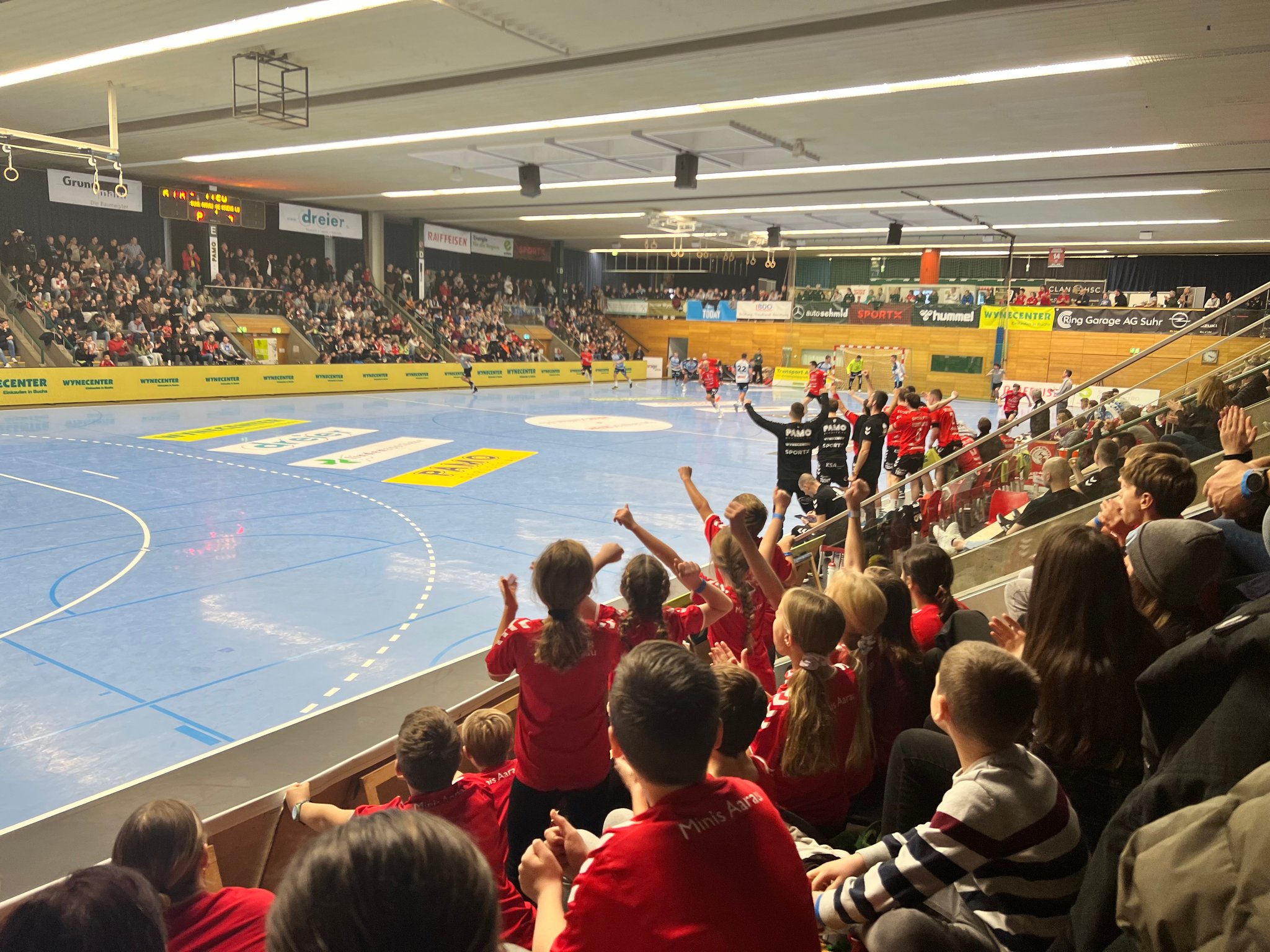 Am Sonntag, dem 17. Dezember 2023, durfte die 3./4. Klasse bei einem besonderen Erlebnis dabei sein. In der höchsten Handballliga der Schweiz konnten die Schülerinnen und Schüler die Spieler des HSC Suhr-Aarau beim Einlaufen begleiten und hinter die Kulissen eines Höchstligaspiels schauen.