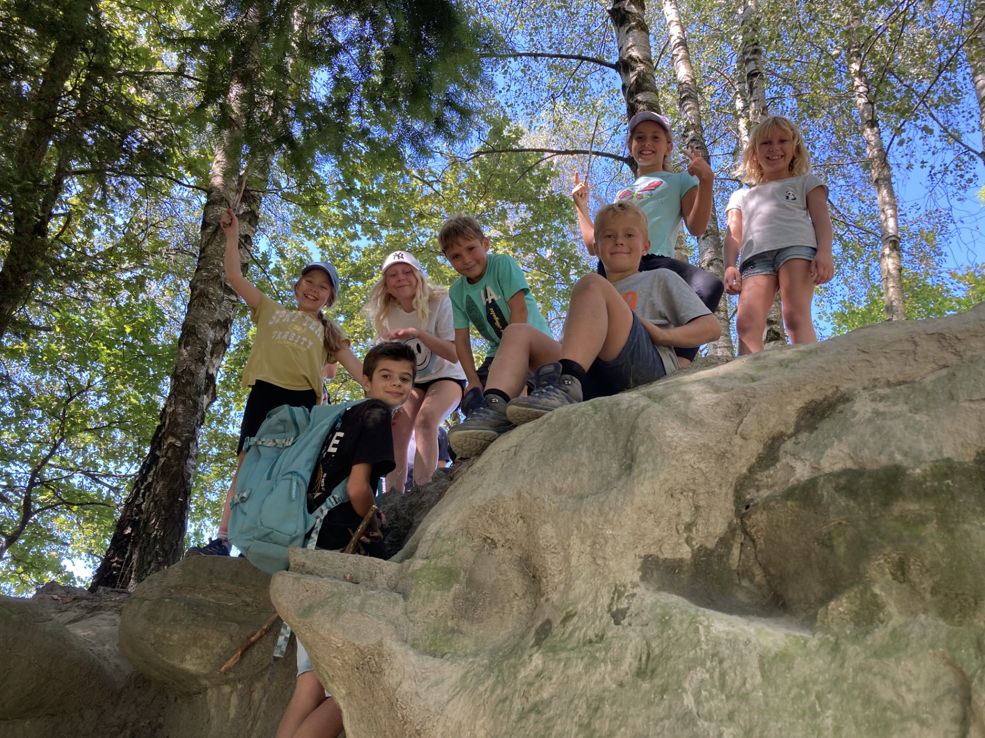 Die 3./4. und die 5./6. Klasse fuhren mit dem Fahrrad nach Willisau. Bei der Badi parkierten wir die Fahrräder und wanderten zum Znüni Spot am Waldrand. Weiter ging es dann auf den Mettenberg. Da angekommen haben wir ein Feuer gemacht, unsere Würste, Schlangenbrote und Marshmallows gebrätelt und viel Zeit im Wald beim Klettern und Spielen verbracht. Glücklich und müde kehrten wir am Nachmittag nach Hause. Es war ein toller Tag.