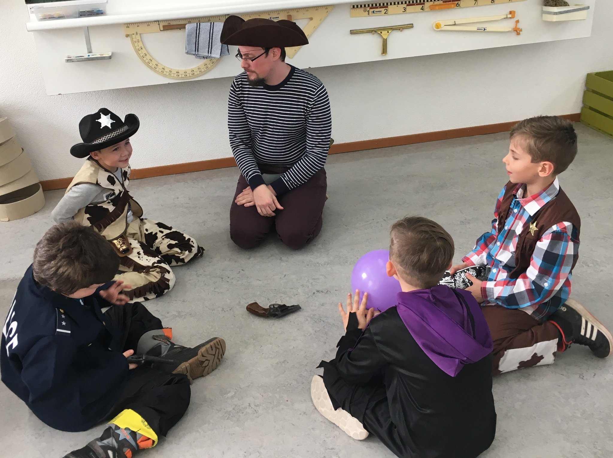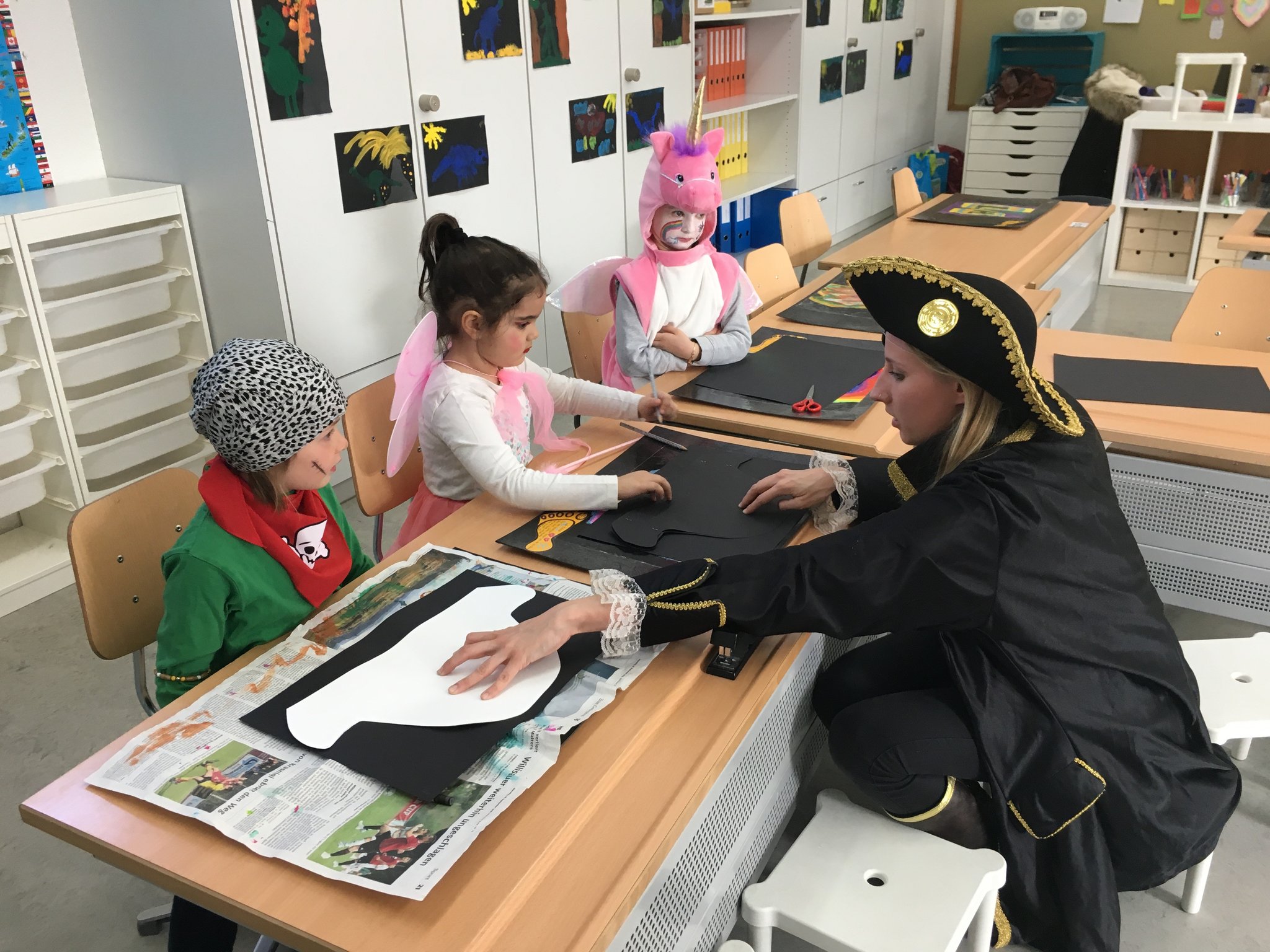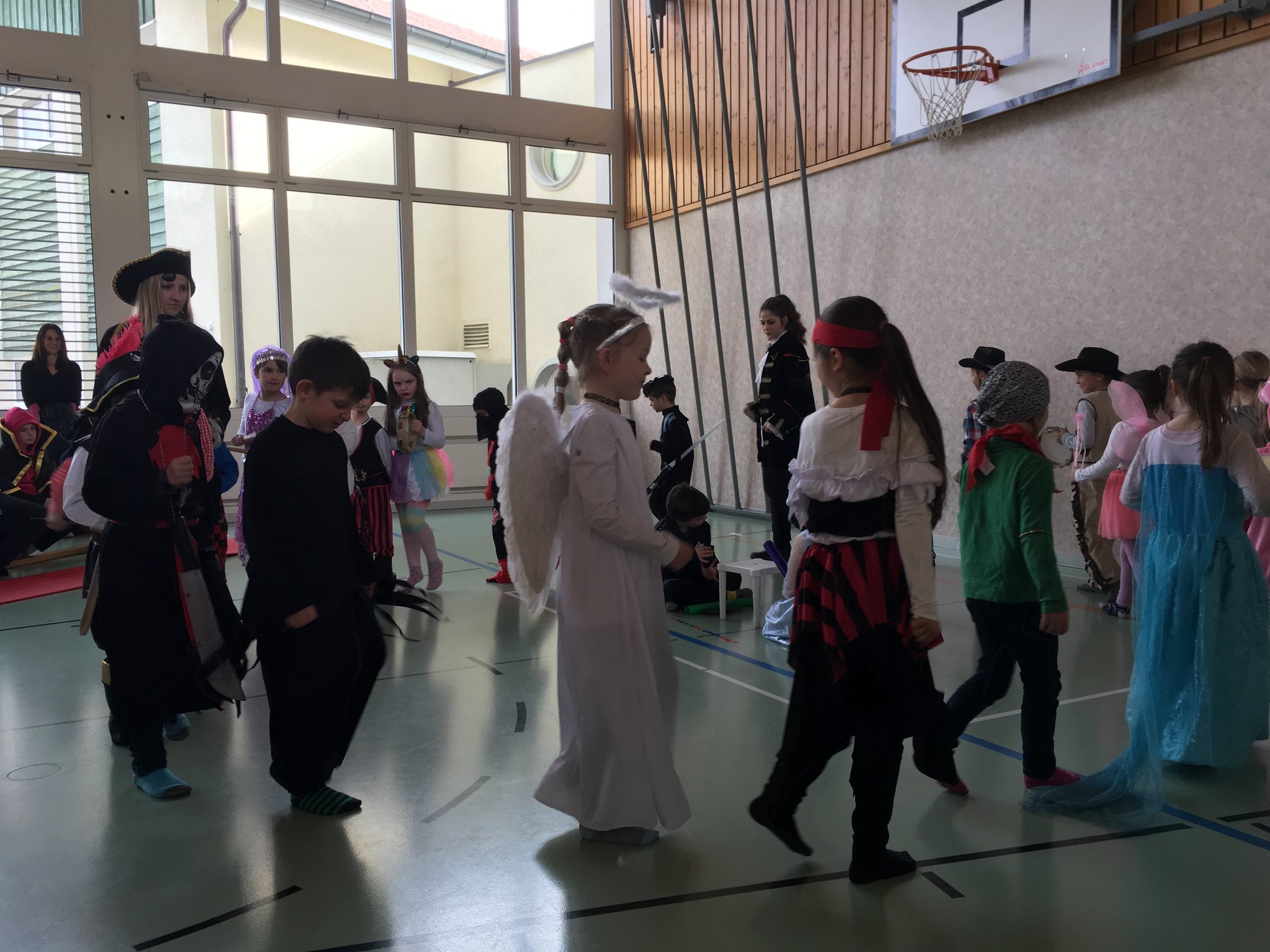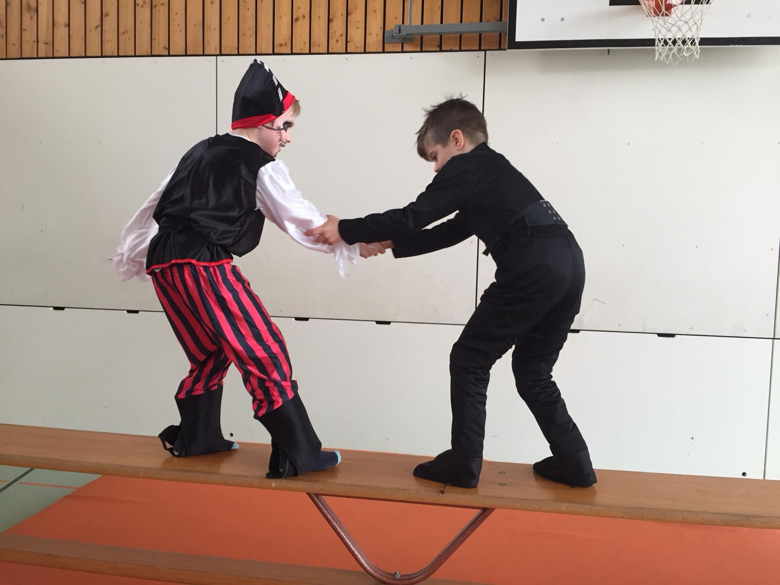 Vor den Fasnachtsferien feierten alle zusammen die Fasnacht. Unter dem Motto "Piraten" verkleideten sich einige Kinder in Seeräuber oder in andere ulkige Figuren. Zur Einstimmung präsentierten einige Kinder ein Lied oder einen Tanz an der Playbackshow, danach standen vier Ateliers zur Auswahl. Natürlich durfte die legendäre Fasnachtsdisco im Keller nicht fehlen.
