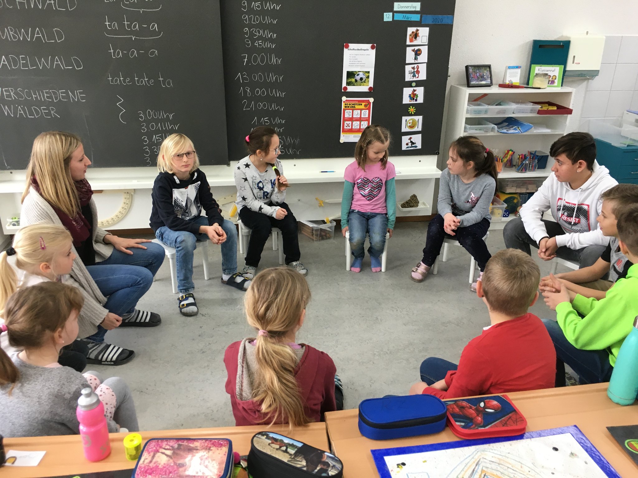 Am Donnerstag, 12. März 2020 fand wiederum ein gemeinsamer Anlass in den Gotti-Götti-Gruppe statt. Gemeinsam wurde das Spiel «Rush-Hour» in den altersdurchmischten Gruppen gespielt. Zum Abschluss wurde das Lied «Mini Farb ond dini» passend zum Schuljahresthema «Meine Farbe, deine Farbe; gemeinsam farbig» gesungen. Wiederum fanden tolle und wertvolle Begegnungen statt.